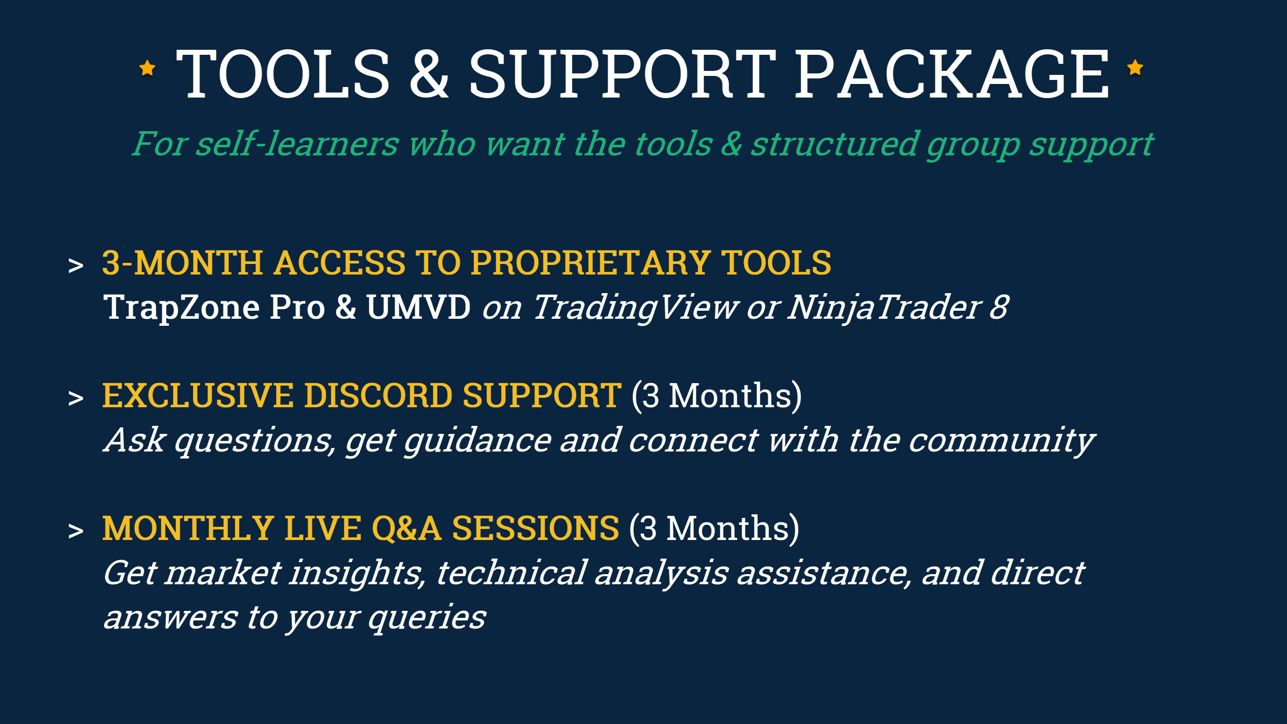 "...This course was an enlightening one and filled with information. The "Tools” module provided great insight into your methodology on being a experience trader, additionally seeing your philosophy around the financial markets was a treat too..."