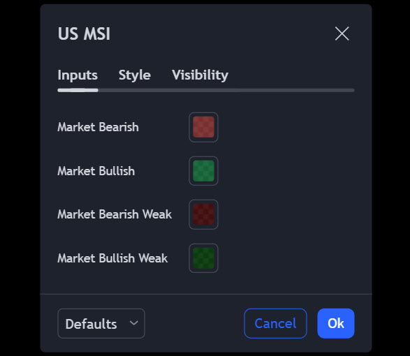 US Market Strength Index (US MSI) simplifies this with one clear visual panel that colors itself red or green based on live market strength across major U.S. futures indices.